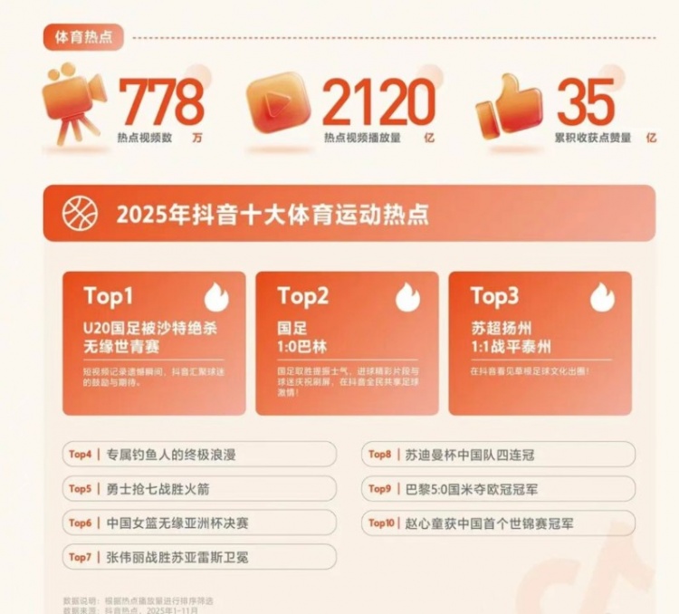 MK体育APP-2025抖音十大体育热点:火勇抢七&中国女篮无缘亚洲杯决赛上榜