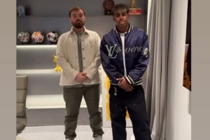 体育资讯4月1日讯 巴萨边锋亚马尔更新社媒动态,晒出与网红Ibai跳舞的视频。